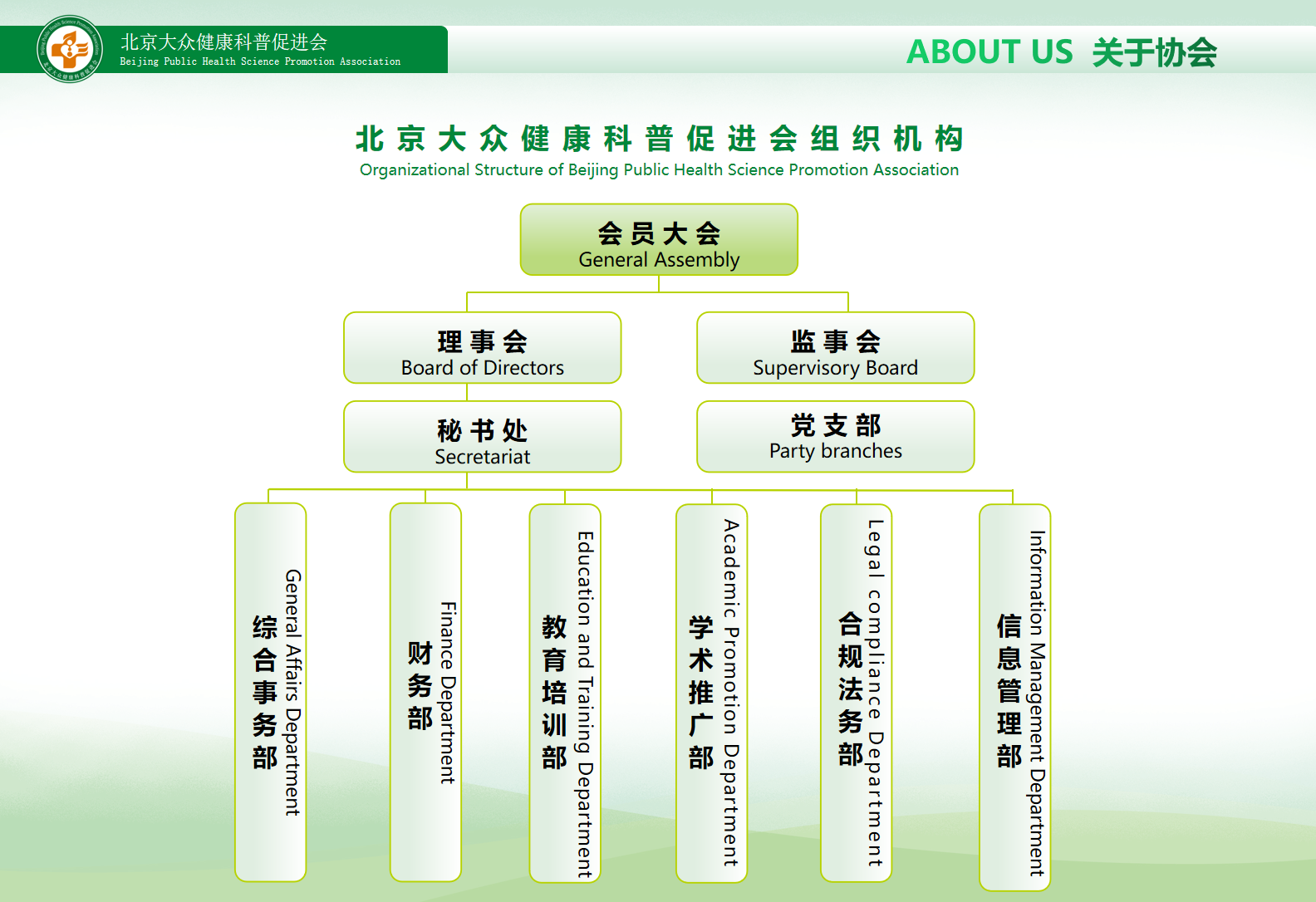 北京大众健康科普促进会是经北京市民政局批准成立的社会法人组织,主要开展和人民群众健康有关的科普宣传、公益调研、课题研讨、会议培训、信息管理、展览展示、推广服务等公益工作。围绕国家卫生与健康工作的大政方针及国家卫健委相关的重点科普工作,发挥大众健康科普促进会的资源力量,与社会各界科普力量互补联动,开展形式多样、内容丰富的科普主题公益活动,承担和完成科普推广项目,在医学科学技术普及推广、医护医药常识专业培训、医疗对口帮扶、重大公共卫生事件应对、健康科普资源建设、健康教育与健康促进、优秀科普作品编辑出版、科普信息化建设等方面开展工作,发挥良好的社会效果。