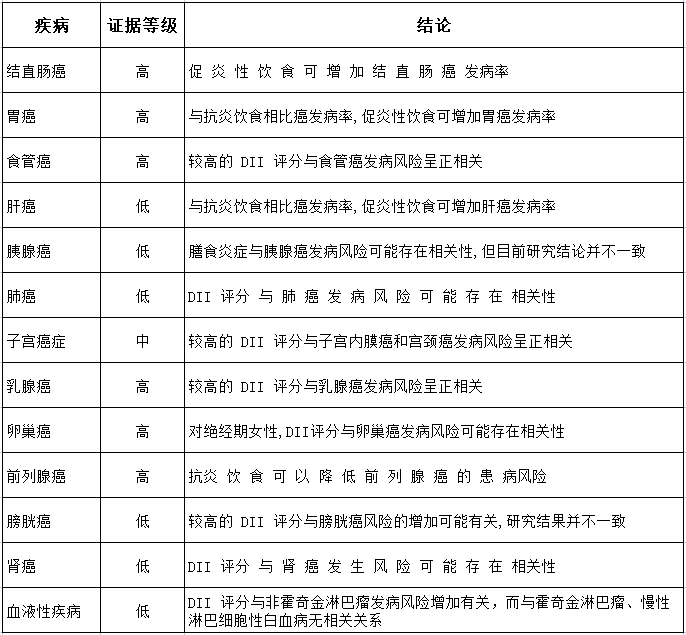 膳食炎症指数与肿瘤发病关系的流行病学证据