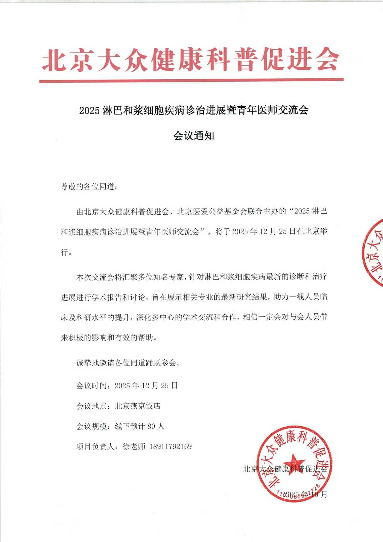 2025淋巴和浆细胞疾病诊治进展暨青年医师交流会