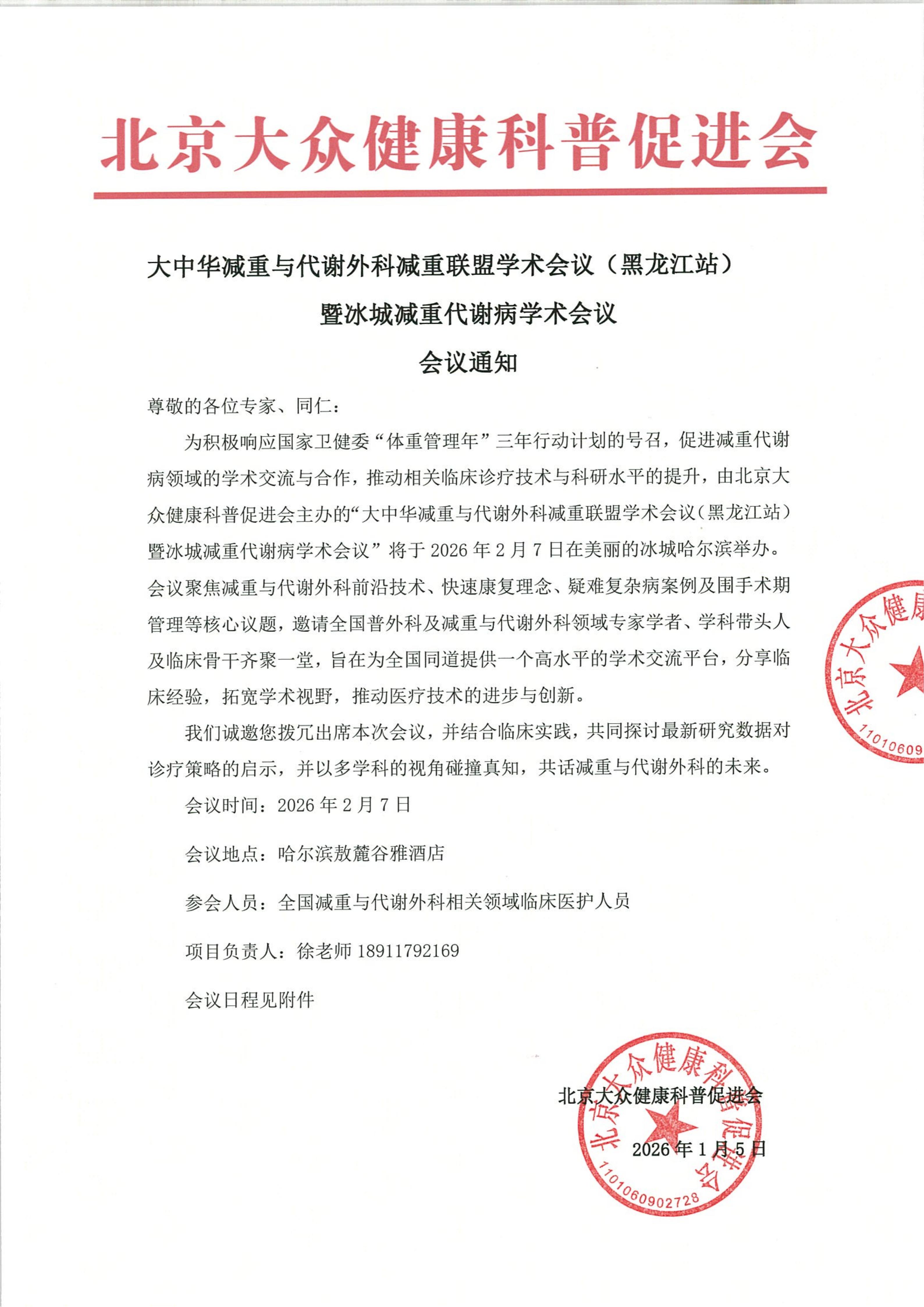 大中华减重与代谢外科减重联盟学术会议(黑龙江站)暨冰城减重代谢病学术会议