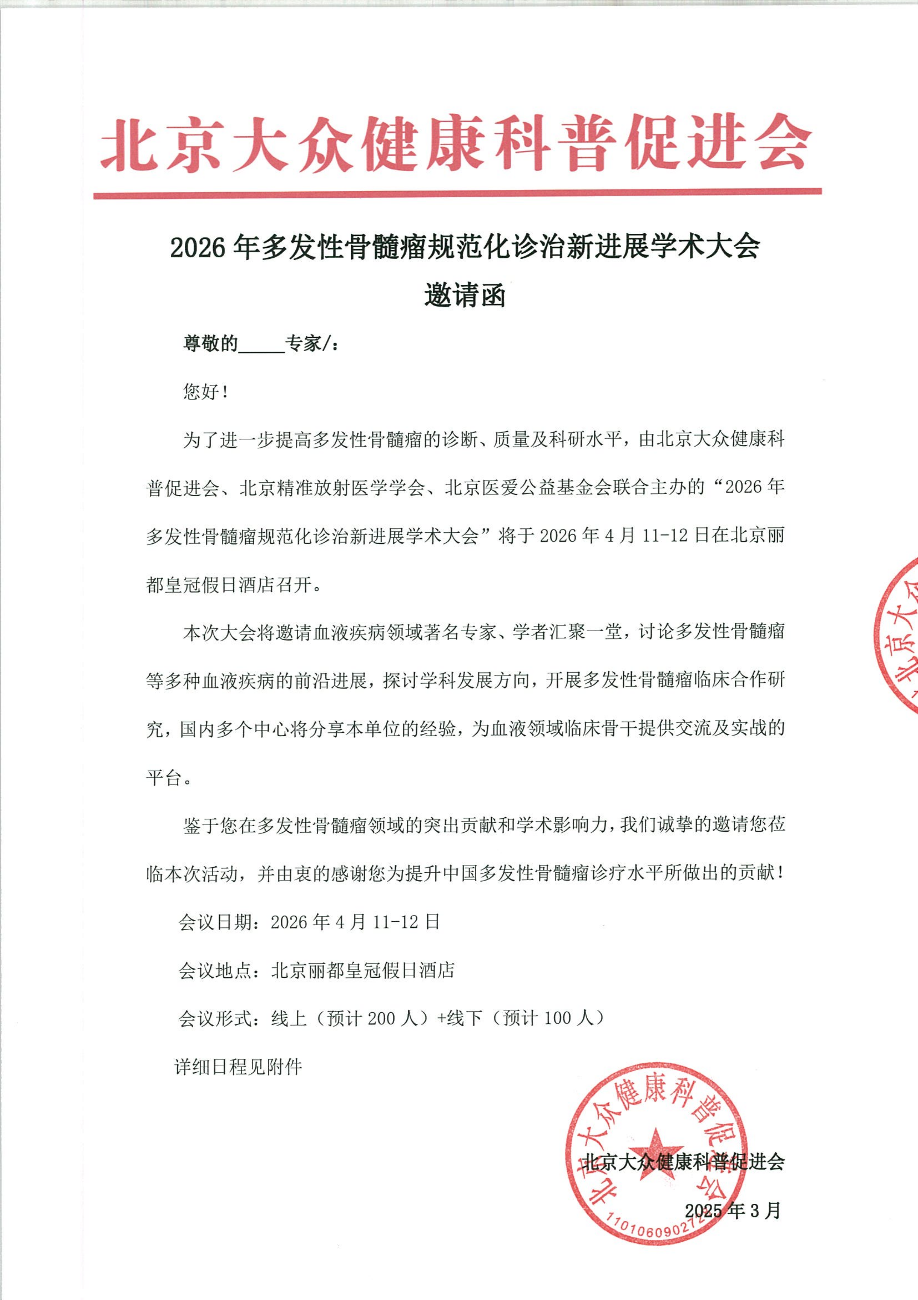 2026年多发性骨髓瘤规范化诊治新进展学术大会-邀请函